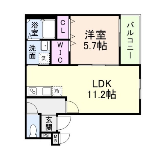 | 間取り詳細 | LDK 11.2畳 、 洋室 5.7畳 |