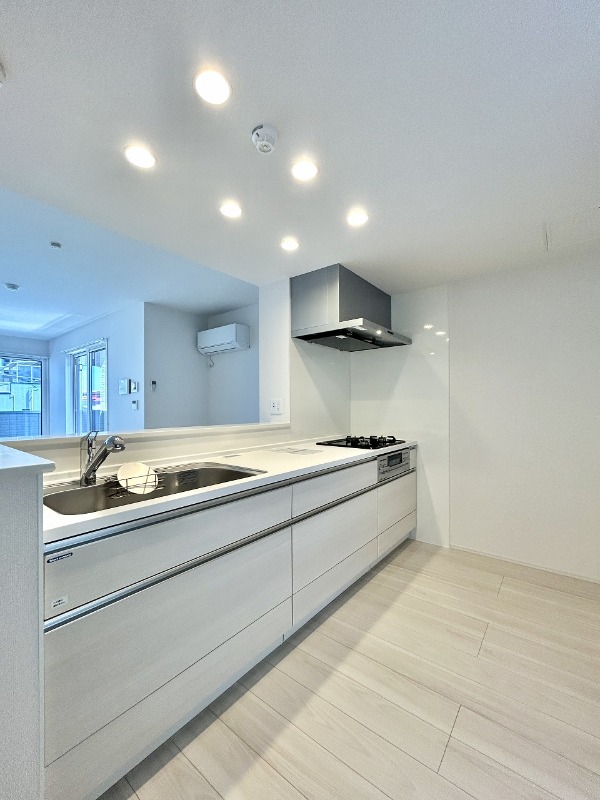 | 設備 | ガス(都市ガス)、インターホン(TVモニター付き)、防犯カメラ、オートロック、宅配ボックス、専用ゴミ置き場(あり)、駐輪場、通風良好、フローリング、全居室フローリング、クッションフロア、照明器具、ベランダ・バルコニー、L字型バルコニー、クローゼット、クローゼット数(3)、下駄箱、バス・トイレ別(別室)、シャワー、追い焚き、浴室乾燥機、脱衣所、給湯、ウォシュレット、洗面台、洗面所独立、シャンプードレッサー、洗濯機置き場(室内)、コンロ設置済、コンロ口数(3)、コンロ種類(都市ガス)、グリル、システムキッチン、カウンターキッチン、エアコン、エアコン台数(1)、24H換気システム、CATV、インターネット使用料無料 | ||