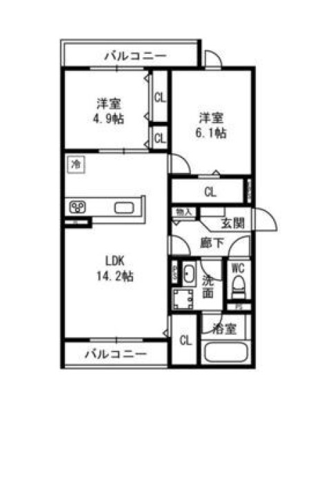 | 間取り詳細 | LDK 14.2畳 、 洋室 6.1畳 、 洋室 4.9畳 |