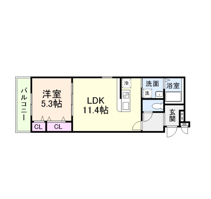 | 間取り詳細 | LDK 11.4畳 、 洋室 5.3畳 |