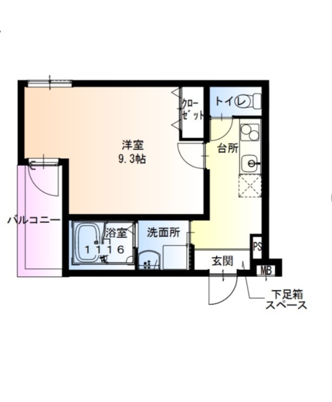 | 間取り詳細 | 洋室 9.3畳 、 K 2.5畳 |