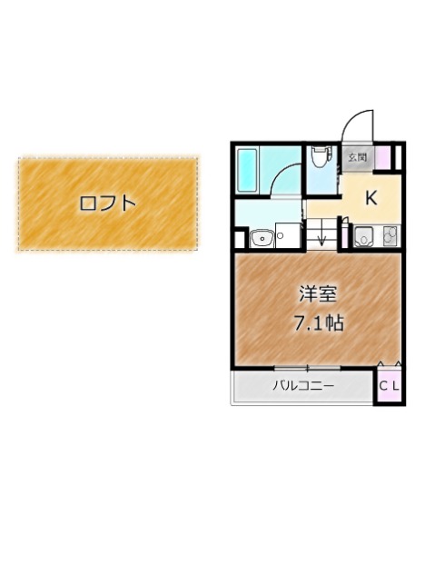 | 間取り詳細 | 洋室 7.1畳 、 K 2.5畳 |