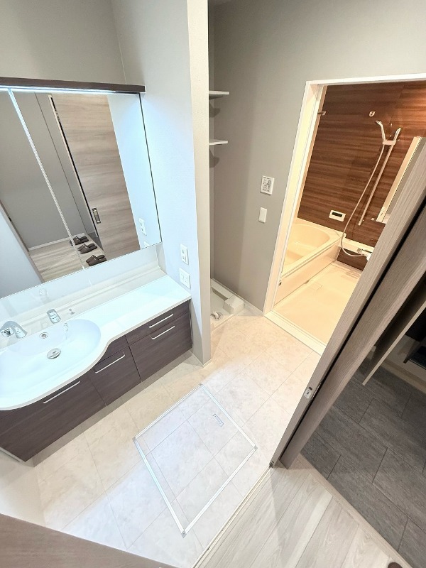 | 設備 | ガス(都市ガス)、インターホン(TVモニター付き)、防犯カメラ、オートロック、宅配ボックス、専用ゴミ置き場(あり)、駐輪場、日当り良好、通風良好、フローリング、全居室フローリング、クッションフロア、照明器具、ベランダ・バルコニー、ウォークインクローゼット、ウォークインクローゼット数(2)、下駄箱、バス・トイレ別(別室)、シャワー、追い焚き、浴室乾燥機、脱衣所、給湯、3点給湯、ウォシュレット、洗面台、洗面所独立、シャンプードレッサー、洗濯機置き場(室内)、コンロ設置済、コンロ口数(3)、コンロ種類(都市ガス)、グリル、システムキッチン、カウンターキッチン、エアコン、エアコン台数(1)、24H換気システム、CATV、インターネット使用料無料 | ||