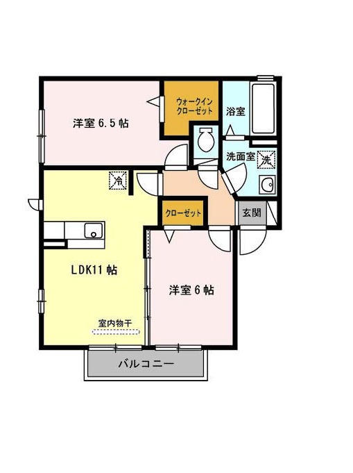 | 間取り詳細 | LDK 11畳 、 洋室 6.5畳 、 洋室 6畳 |