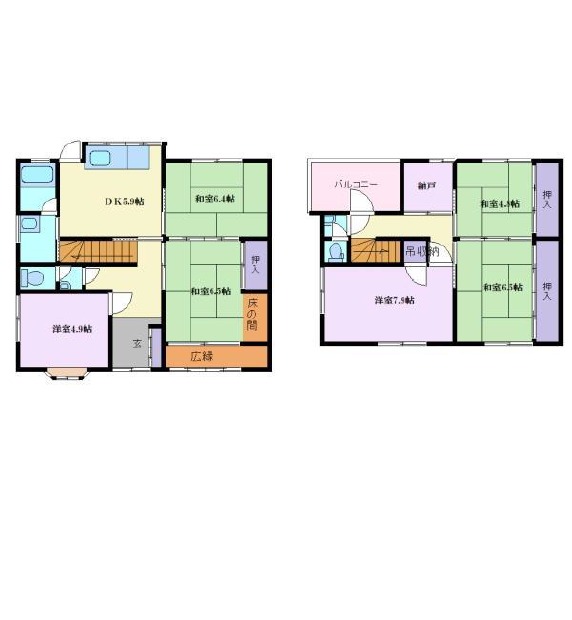 | 間取り詳細 | DK 5.9畳 、 洋室 7.9畳 、 洋室 5畳 、 和室 6.5畳 、 和室 6.5畳 、 和室 6.4畳 、 和室 4.5畳 、 S 畳 |
