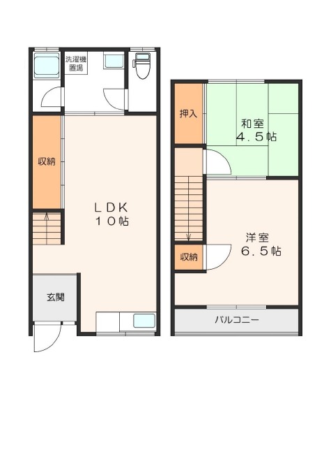 洋室 6.5畳 和室 4.5畳 |