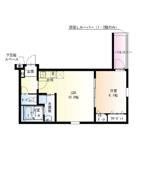 | 間取り詳細 | LDK 10.8畳 、 洋室 6.1畳 |