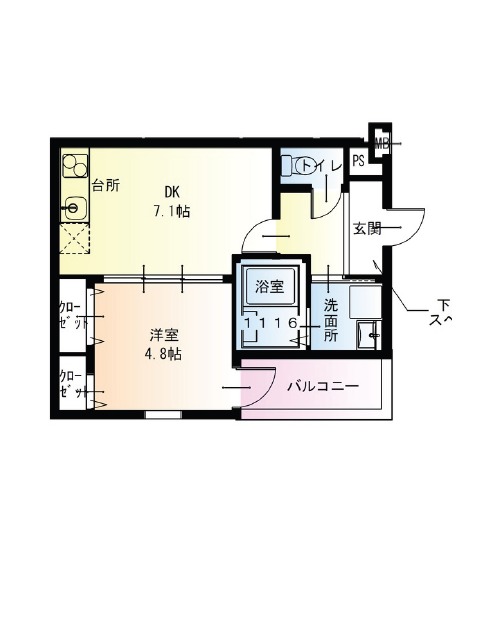 | 間取り詳細 | DK 7.1畳 、 洋室 4.8畳 |
