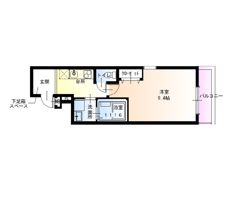 | 間取り詳細 | 洋室 9.4畳 、 K 2.5畳 |