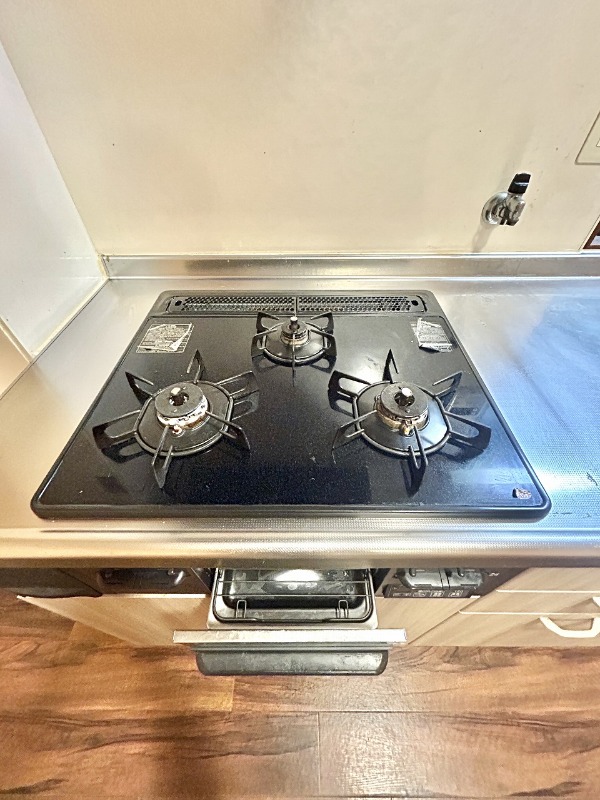 | 設備 | ガス(都市ガス)、インターホン(TVモニター付き)、専用ゴミ置き場(あり)、駐輪場、バイク置き場、通風良好、フローリング、クッションフロア、ベランダ・バルコニー、2面バルコニー、クローゼット、クローゼット数(2)、押入れ、下駄箱、バス・トイレ別(別室)、シャワー、追い焚き、脱衣所、給湯、ウォシュレット、トイレ2か所、洗面台、洗面所独立、シャンプードレッサー、洗濯機置き場(室内)、コンロ設置済、コンロ口数(3)、コンロ種類(都市ガス)、グリル、システムキッチン | ||