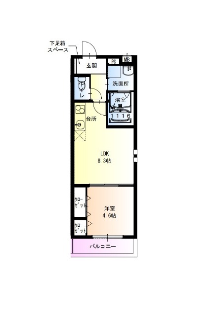 | 間取り詳細 | LDK 8.3畳 、 洋室 4.6畳 |