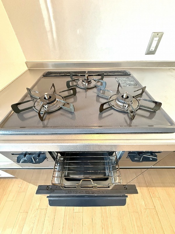 グリル付きの3口コンロで段取り良く料理が出来ます♪