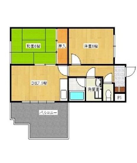 | 間取り詳細 | DK 7.5畳 、 洋室 6畳 、 和室 6畳 |