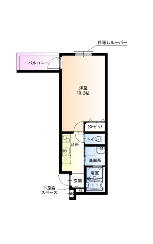 | 間取り詳細 | 洋室 10.2畳 、 K 2.5畳 |