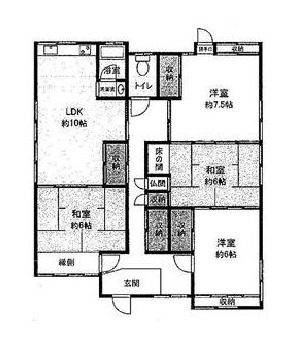 | 間取り詳細 | LDK 10畳 、 洋室 7.5畳 、 洋室 6畳 、 和室 6畳 、 和室 6畳 |