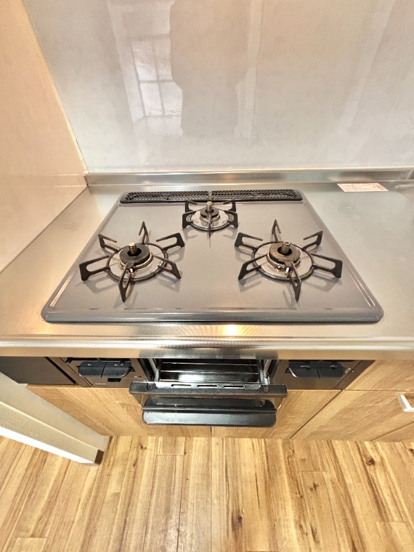 | 設備 | ガス(都市ガス)、専用ゴミ置き場(あり)、駐輪場、通風良好、フローリング、クッションフロア、ベランダ・バルコニー、クローゼット、クローゼット数(1)、押入れ、バス・トイレ別(別室)、シャワー、脱衣所、給湯、ウォシュレット、ウォームレット、洗面台、洗面所独立、シャンプードレッサー、洗濯機置き場(室内)、コンロ設置済、コンロ口数(3)、コンロ種類(都市ガス)、グリル、システムキッチン | ||