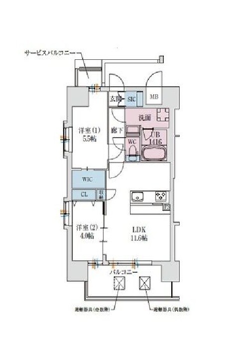 | 間取り詳細 | LDK 11.6畳 、 洋室 5.5畳 、 洋室 4畳 |