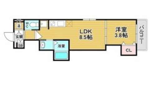 | 間取り詳細 | LDK 8.5畳 、 洋室 3.8畳 |