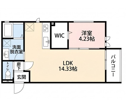 | 間取り詳細 | LDK 14.33畳 、 洋室 4.23畳 |