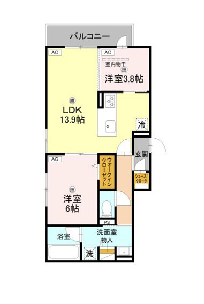 | 間取り詳細 | LDK 13.9畳 、 洋室 6畳 、 洋室 3.8畳 |