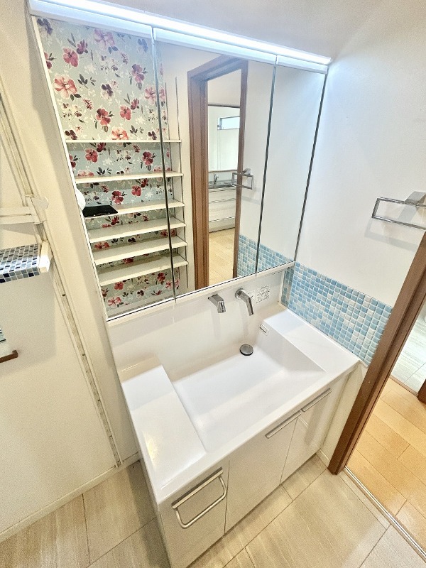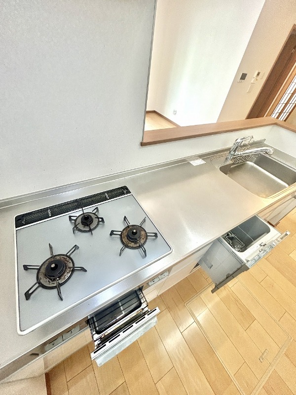 | 設備 | ガス(都市ガス)、インターホン(TVモニター付き)、専用ゴミ置き場(あり)、駐輪場、日当り良好、通風良好、フローリング、クッションフロア、ベランダ・バルコニー、クローゼット、クローゼット数(4)、全居室収納、押入れ、下駄箱、バス・トイレ別(別室)、シャワー、追い焚き、浴室乾燥機、脱衣所、給湯、ウォシュレット、ウォームレット、洗面台、洗面所独立、シャンプードレッサー、洗濯機置き場(室内)、コンロ設置済、コンロ口数(3)、コンロ種類(都市ガス)、グリル、システムキッチン、カウンターキッチン、24H換気システム | ||
