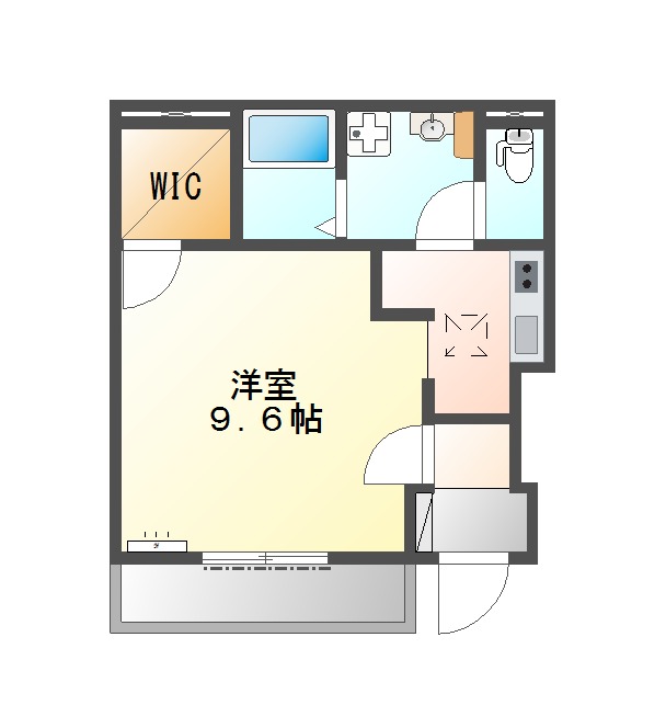 | 間取り詳細 | K 2.5畳 、 洋室 9.6畳 |
