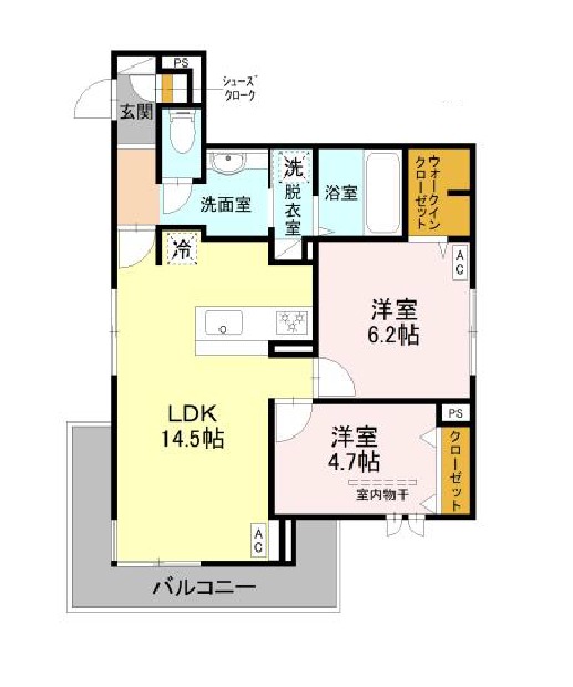 | 間取り詳細 | LDK 14.5畳 、 洋室 6.2畳 、 洋室 4.7畳 |